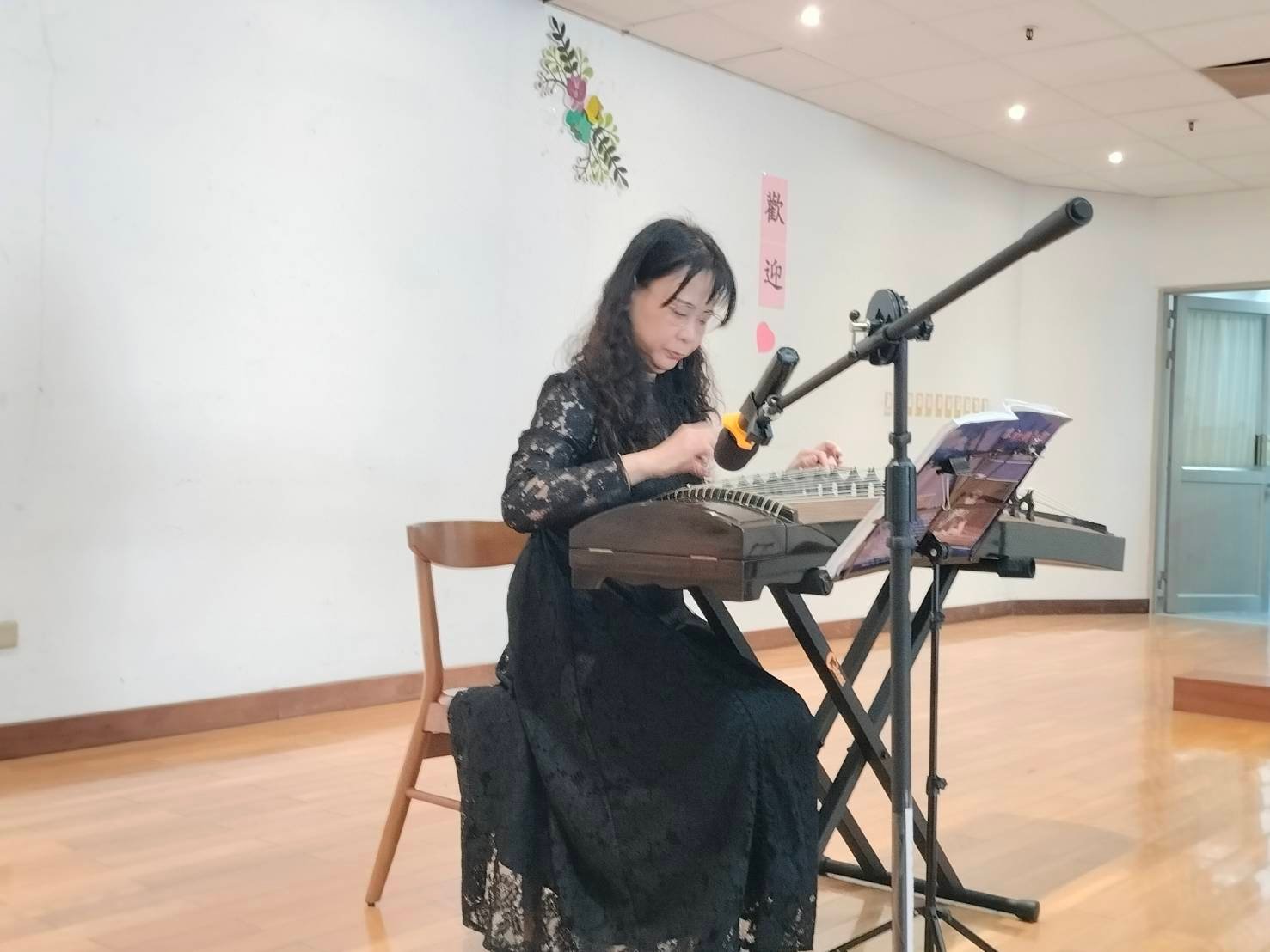 於養護堂隊松柏樓辦理之卡拉OK活動現場氣氛熱鬧溫馨,由長輩們輪流點唱耳熟能詳的懷舊金曲與賀年歌曲,並隨著旋律開心哼唱,彼此互動熱絡,展現滿滿活力;在安養堂隊的長青樓則邀請古箏大師劉玫秀老師專業演奏,帶來多首經典曲目,琴音悠揚典雅,讓長輩在靜謐的樂聲中放鬆身心,感受傳統音樂之美。