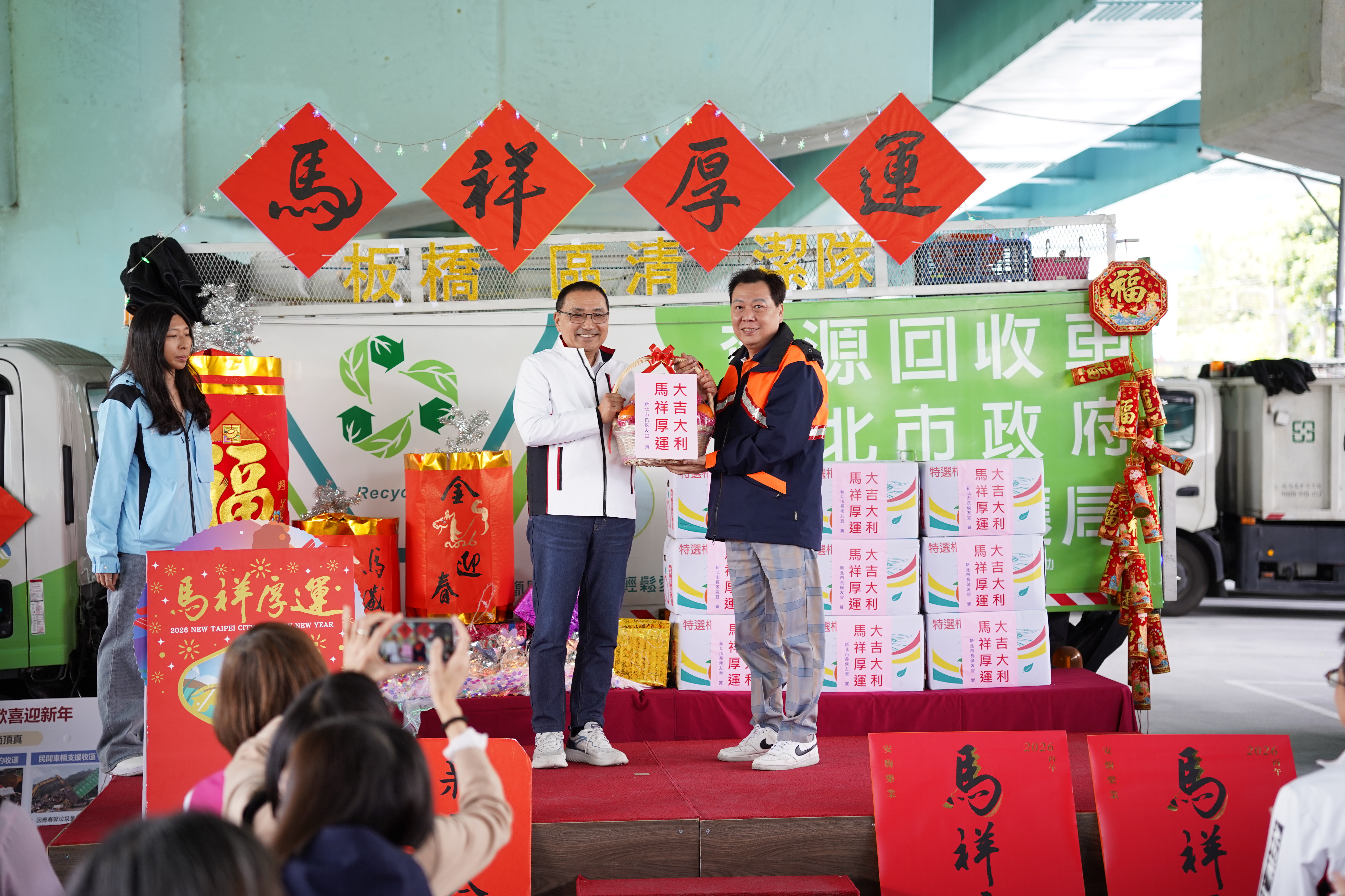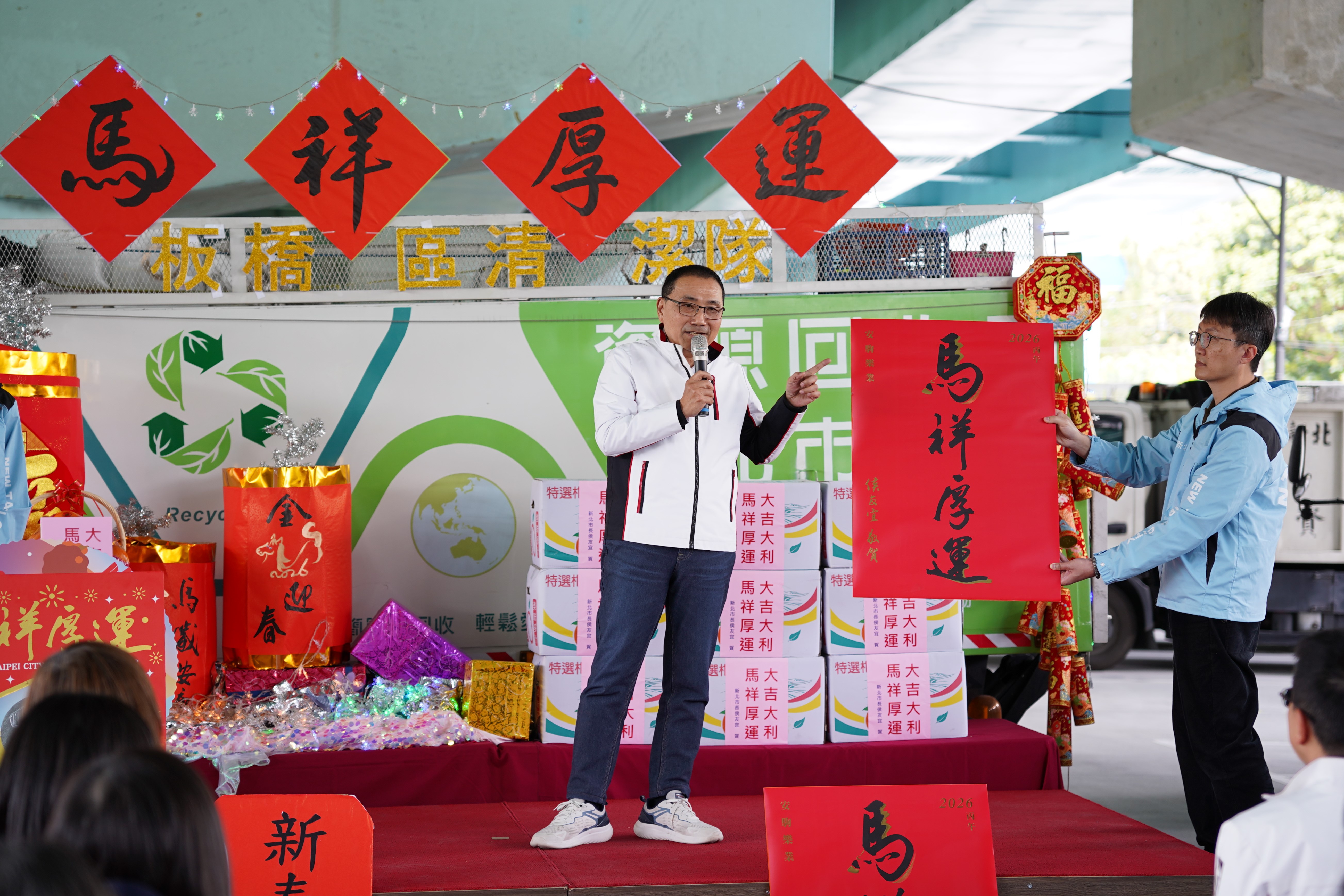 侯友宜市長感謝清潔隊員維持市容環境整潔,並祝福大家馬祥厚運
