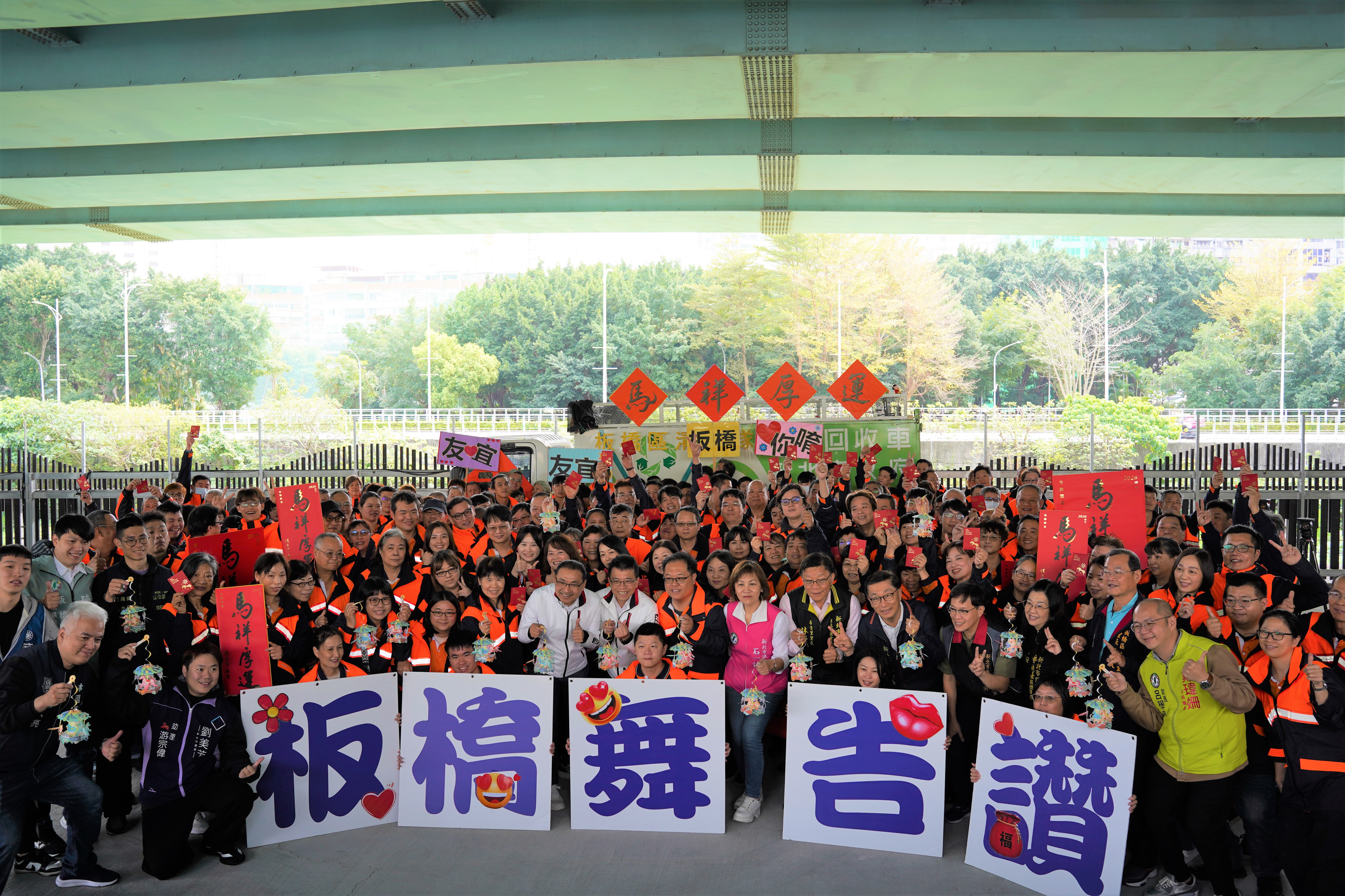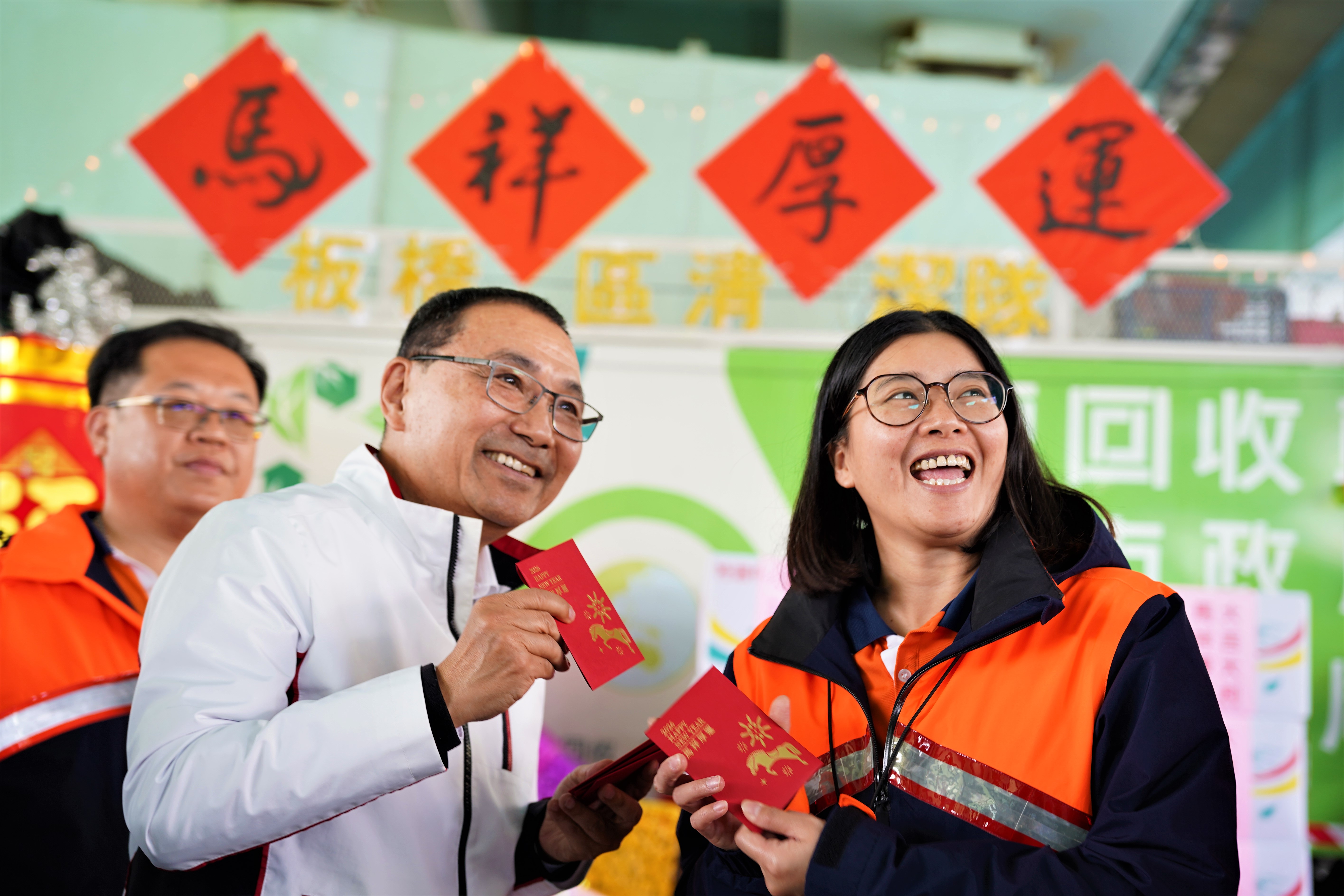 農曆春節期間,當萬家燈火團圓慶賀時,第一線清潔隊員仍默默堅守崗位,維持市容環境整潔。為感謝這群無名英雄的辛勞,新北市長侯友宜今(26)日前往板橋區清潔隊,向基層同仁致上誠摯關懷與新春祝福,並親自致贈象徵「馬上賺錢」10元福袋及「大吉大利」的橘子。