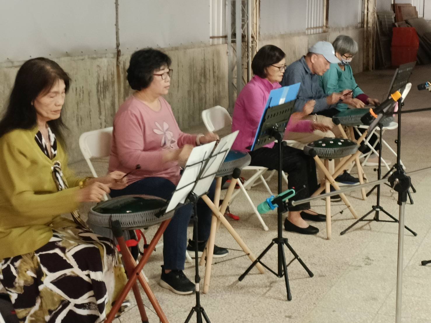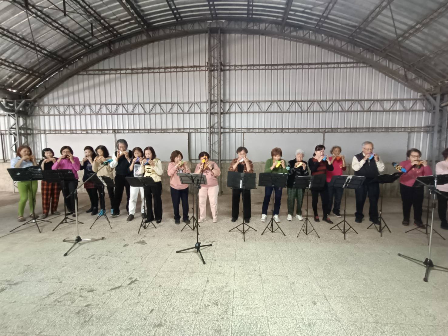主辦人劉貞宜為奧地利維也納大學音樂碩士,專攻豎琴,現任教南華大學民族音樂學系,九年前起於台南多處社區教導陶笛、小豎琴與空靈鼓。本次成果展約 120 位學員參與,多數年逾 60 歲,最高齡為 91 歲的陶笛學員陳天賀。陳天賀表示,陶笛有助練肺活量與腹式呼吸、幫助排痰,兼具健康促進與心靈愉悅。