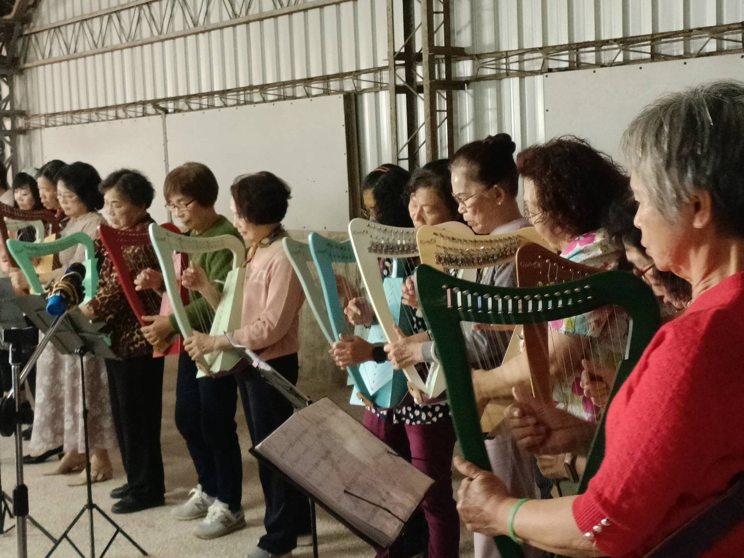 【新臺灣網報記者杜忠聰/臺南報導】3 月 14 日下午,音樂輔療講師劉貞宜於安平工業區樂豐工廠頂樓舉辦樂齡師生成果展,匯集陶笛、豎琴與空靈鼓演出,並特邀國際知名視障鋼琴家許哲誠現場演奏,與高齡學員同台合奏,場面溫馨動人。