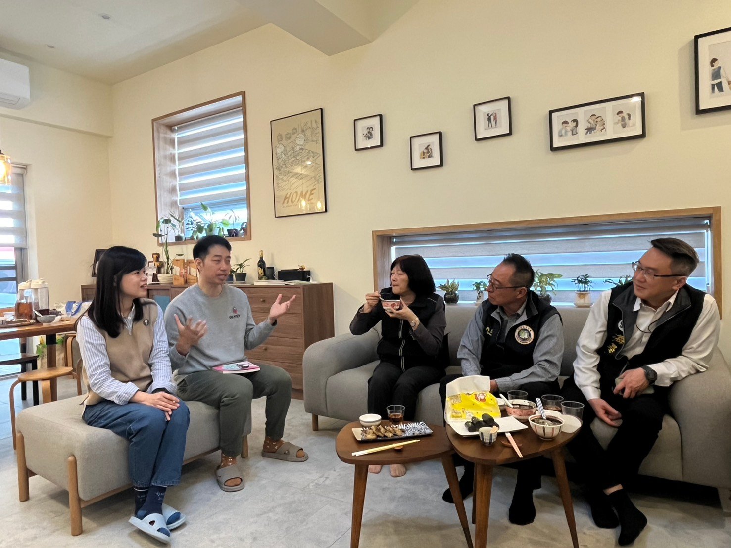一行人緊接著訪視定居於嘉義縣中埔鄉的香港新住民李崇德先生及配偶姚楚穎女士。李崇德原是名插畫家,筆名「波屎」,姚楚穎則喜歡烹飪,暱稱「楚榮」,兩人於 103 年創設「榮式住家飯」臉書粉絲專頁,一個負責拍攝繪圖、一個負責煮飯創作,在網路上分享美食食譜,成為擁有 4 萬多名粉絲的烹飪部落客。兩人創作的食譜也在香港出版成書,包括「男人都愛住家飯」及「海味遇上湯」等。先前多次造訪臺灣的經驗,讓李崇德夫妻愛上臺灣的文化氛圍與濃厚的人情味,決定移居臺灣生活,兩人於 109 年先在臺中開設店面「榮式住家飯」販售港式蘿蔔糕,113 年時又移居至嘉義生活。現在除了接案平面設計插畫,公司也從蘿蔔糕販賣店轉型為產品設計及圖書出版業,未來將持續以手繪插畫分享溫馨的家常菜食譜與香港道地美食。